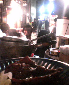 で演奏してきました! 打ち上げな感じで、牛タンを堪能中。路上で飲んで食べるのはヨイデスネ。 こういうお祭りは楽しいですね。